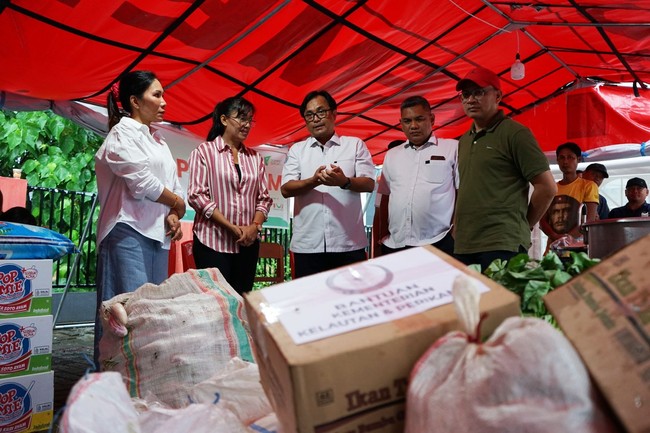 Tercatat KKP menyerahkan 5.000 ikan tuna kaleng, 150 kg ikan beku, 1.170 kg beras, 155 kardus mie instan, gula 150 kg dan akan terus bertambah serta sejumlah kebutuhan pokok lainnya termasuk sayur dan ikan kepada masyarakat.
