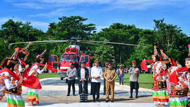 Jokowi lepas landas dari Pangkalan TNI AU Haluoleo, Kabupaten Konawe Selatan, menuju Kabupaten Muna dengan helikopter Super Puma TNI AU pada pukul 08.35 WITA. Jokowi dan rombongan mendarat Alun-Alun Raha sekitar Muna, sekitar pukul 09.10 WITA, Senin (13/5/2024).