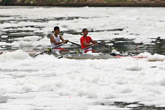Sebuah foto yang memperlihatkan seorang atlet dayung tengah berlatih di tengah hamparan buih bak permadani di aliran Kanal Banjir Timur (KBT) di kawasan Marunda, Cilincing, Jakarta Utara. Foto itu sempat viral di media sosial pekan lalu. Ternyata itu adalah busa limbah yang mencemari sungai.