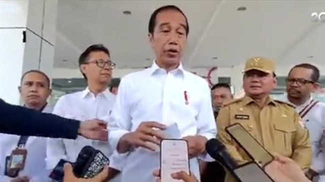 Saat itu, Jokowi hendak memberikan keterangan pers setelah meninjau RSUD Konawe, Selasa (14/5/2024). Jokowi didampingi Menkes Budi Gunadi Sadikin, Menteri PUPR Basuki Hadimuljono, Mensesneg Pratikno, hingga Panglima TNI Jenderal Agus Subiyanto.
