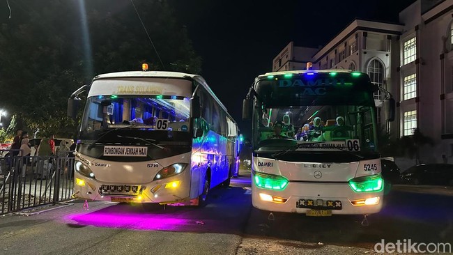Pantauan detikSulsel di Asrama Haji Sudiang, Makassar, Rabu (15/5/2024), sekitar pukul 20.50 Wita, ada 11 unit bus berjejer di depan Hotel Raodah. Belasan unit bus tersebut disiapkan oleh tim penyelenggara untuk mengangkut 450 calon haji kembali ke Bandara Internasional Sultan Hasanuddin Makassar.