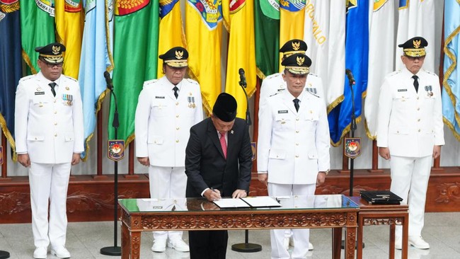 Menteri Dalam Negeri (Mendagri) Tito Karnavian melantik lima penjabat (Pj) gubernur untuk ditugaskan di Maluku Utara, Banten, Sulawesi Barat, Gorontalo, dan Sulawesi Selatan. Tito mengaku mendoakan mereka agar menjadi pemimpin di masa mendatang.