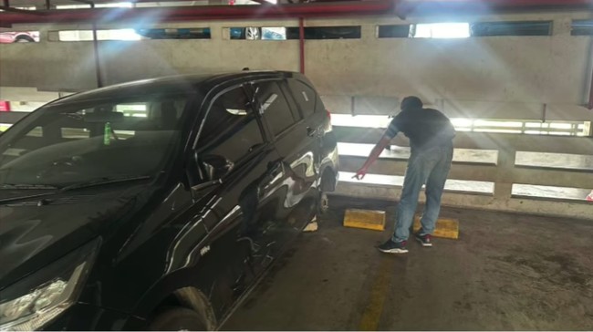 Selain mendatangi TKP ban mobil hilang, polisi mengecek rekaman CCTV di RSUD Koja. Saat mengecek TKP, tampak mobil korban berwarna hitam terparkir dalam kondisi ban hilang.