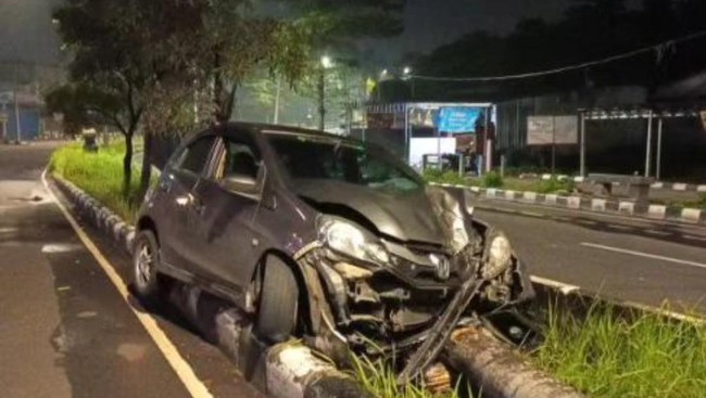 "Kendaraan hilang kendali dan menabrak pohon palem dan trotoar tengah jalan," ucapnya.