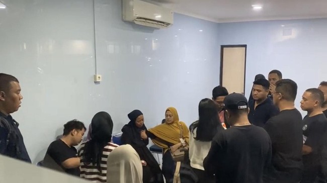 Tampak di dalam ruang jenazah, tangis istri dan keluarga tak terbendung. Mereka terlihat saling menguatkan satu sama lain.