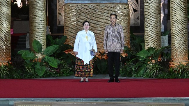 Kedatangan Puan di Taman Budaya GWK Bali, Minggu (19/5), disambut hangat Presiden RI Joko Widodo (Jokowi) sebagai penyelenggara welcoming dinner. Tiba di lokasi, Puan yang datang mengenakan kebaya berwarna putih dan kain Endet khas Bali langsung bersalaman dengan Jokowi yang menunggu di atas panggung jalur VVIP bagi para kepala negara yang hadir.