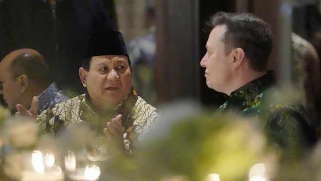 Presiden terpilih Prabowo Subianto mengunggah momen akrab bersama CEO SpaceX Elon Musk. Keduanya sempat makan malam bersama di sela acara pembukaan World Water Forum (WWF) ke-10 di Bali.