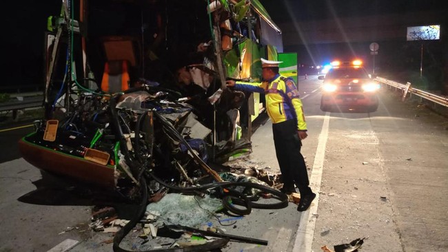 Dilansir detikJatim, Rabu (22/5/2024), kecelakaan itu menyebabkan dua penumpang tewas dan 15 orang luka. Kanit PJR Jatim 3 AKP Yudiono menjelaskan bus pariwisata yang dikemudikan Yanto (36) melaju dari barat ke timur atau dari arah Nganjuk menuju Mojokerto di Tol Jomo.