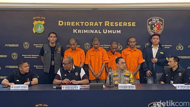 "Dari penangkapan pelaku, kemudian tim Subdit Jatanras melakukan pengembangan dari pelaku utama sampai penadah, sehingga tersangka yang berhasil ditangkap ada 5 orang tersangka," kata Dirkrimum Polda Metro Jaya Kombes Wira Satya Triputra kepada wartawan di Polda Metro Jaya, Jakarta, Selasa (22/5/2024).