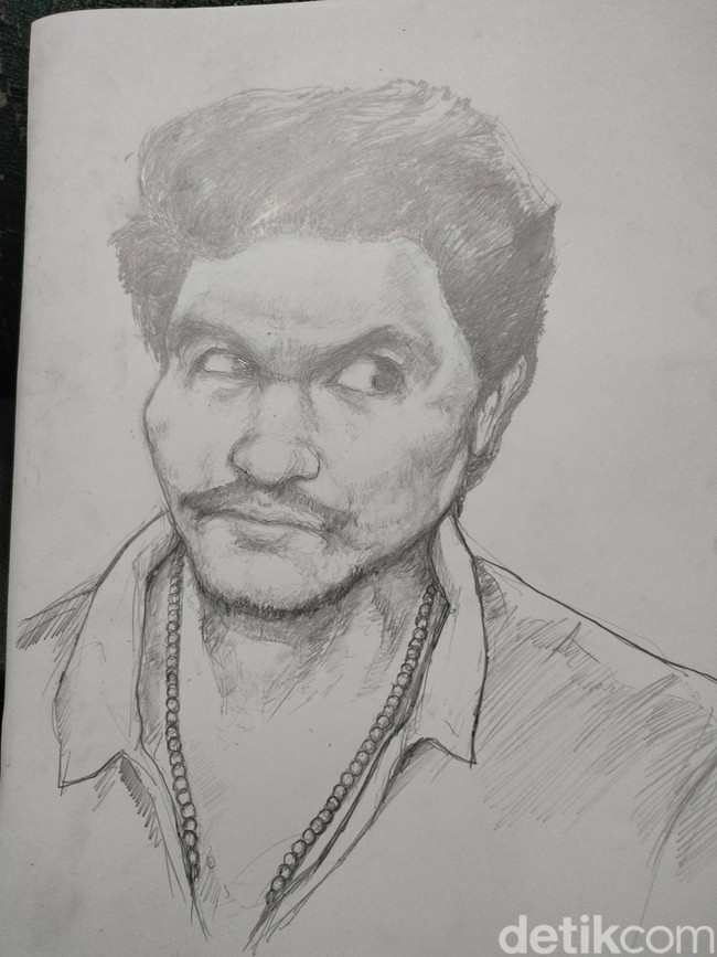 Sketsa itu juga menunjukkan sedikit bulu di bagian dagu hingga memanjang ke arah rahang. Dari gambar tersebut juga terlihat pelaku memiliki mata besar. Telinga pelaku juga tak terlihat caplang.