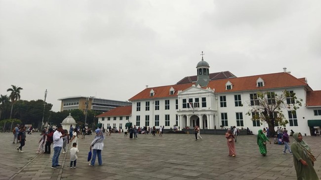 Pantauan detikcom di lokasi, Sabtu (25/5/2024), kawasan Kota Tua mulai ramai pengunjung pukul 11.55 WIB atau setelah hujan yang mengguyur Jakarta sejak semalam mulai reda.