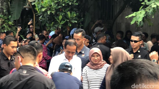 Terlihat juga Jokowi tampak membagikan beberapa kaus pada pengunjung.