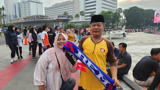 "(Datang dari) Malang, asli Arema. Jalan-jalan di Bundaran HI. Sama foto-foto," kata Alex di Bundaran HI, Jakarta, Minggu (26/5/2024).
