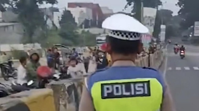 Dalam video yang dilihat detikcom, Minggu (26/5/2024), terlihat warga memadati pinggir jalan selepas jalur keluar Tol Sawangan. Polisi pun membubarkan keramaian tersebut.