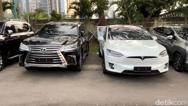 Pantauan detikcom, Senin (27/5/2024), deretan mobil mewah tersebut sudah terparkir di samping gedung Ditreskrimum Polda Metro Jaya. Terlihat mobil Tesla, Mercy, Land Cruiser, hingga Mercy G-Class.