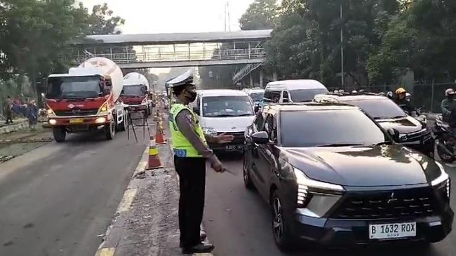 Sementara itu berdasarkan foto dan video yang diunggah TMC Polda Metro Jaya di Twitter, terlihat dua truk molen di sekitar lokasi perbaikan jalan. Selain itu terlihat ruas jalan yang dilakukan perbaikan itu terlihat ditutup.
