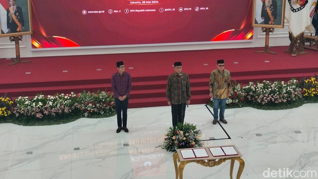 Pelantikan dilakukan di Ruang Sedang Utama kantor KPU RI, Jakarta Pusat, Selasa (28/5/2024). Jajaran komisioner KPU turut hadir dalam pelantikan itu.