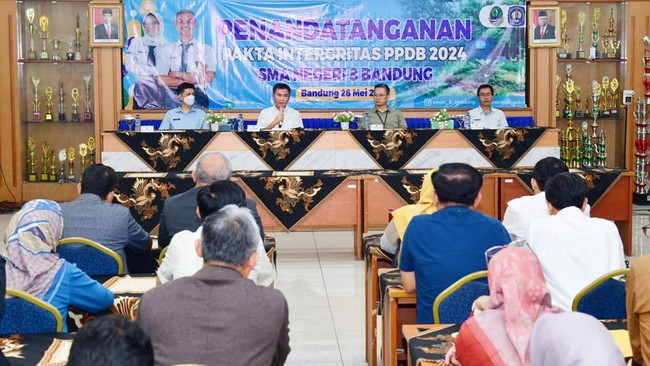 Pakta integritas ini ditandatangani oleh operator PPDB, ketua dan wakil ketua komite, kepala sekolah, wakil kepala sekolah, juga Plh Kepala Dinas Pendidikan Jabar Ade Afriandi di aula SMA Negeri 8 Kota Bandung.