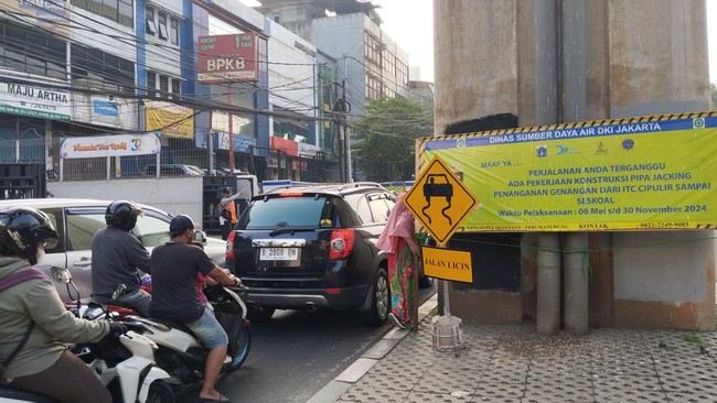 Pantauan detikcom, Kamis (30/5/2024), kemacetan parah terjadi di Jalan Ciledug Raya, tepatnya di dekat Pasar Cipulir arah Velbak. Kemacetan dipicu penyempitan ruas jalan akibat proyek galian.