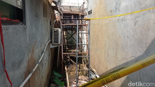 Sementara itu, tower tempat menyimpan toren air masih di posisi semula. Garis polisi juga tampak masih terpasang di area tersebut.