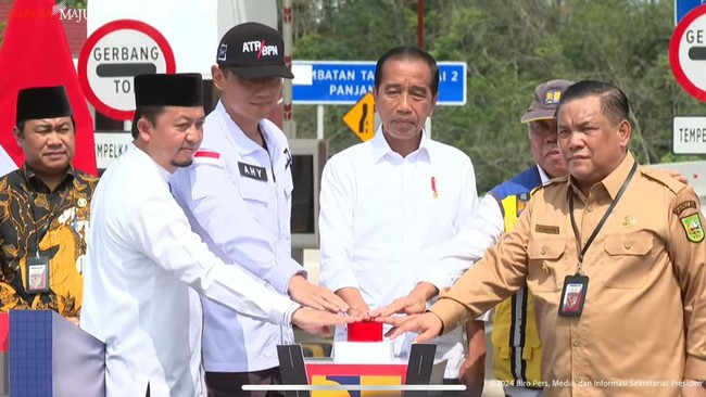 "Alhamdulillah hari ini jalan tol Pekanbaru-Padang seksi Bangkinang-Pangkalan tahap 1, yaitu Bangkinang-Koto Kampar telah selesai, dengan panjang 24,7 km yang kita bangun sejak 2019-2024, menghabiskan anggaran Rp 4,8 triliun telah selesai dan bisa digunakan," kata Jokowi dalam peresmian seperti dilihat di YouTube Sekretariat Presiden, Jumat (31/5/2024).