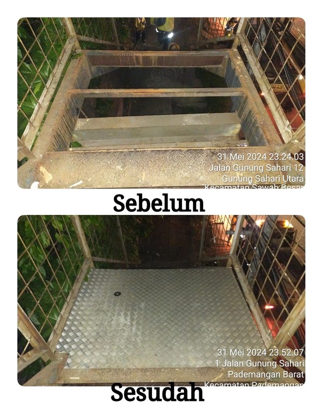 Bagian lantai yang bolong telah diperbaiki. Bina Marga Jakarta Utara akan memperketat pengawasan di lokasi setelah kejadian ini.