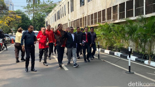 Pantauan detikcom, Selasa (4/6/2024), Hasto tiba di Polda Metro Jaya pukul 10.00 WIB. Hasto didampingi kuasa hukum pribadinya, Patra M. Zen, dan tim kuasa hukum dari PDI Perjuangan. Hasto terlihat mengenakan setelan jas melambaikan tangan ke hadapan awak media.