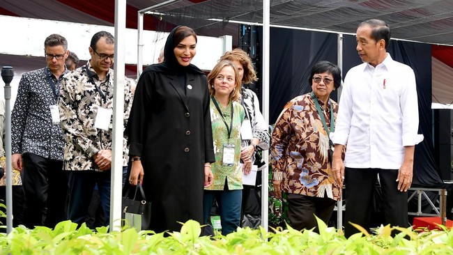 Turut mendampingi Jokowi dalam peninjauan ini Menteri Lingkungan Hidup dan Kehutanan Siti Nurbaya Bakar serta Menteri Investasi/Kepala Badan Koordinasi Penanaman Modal Bahlil Lahadalia.