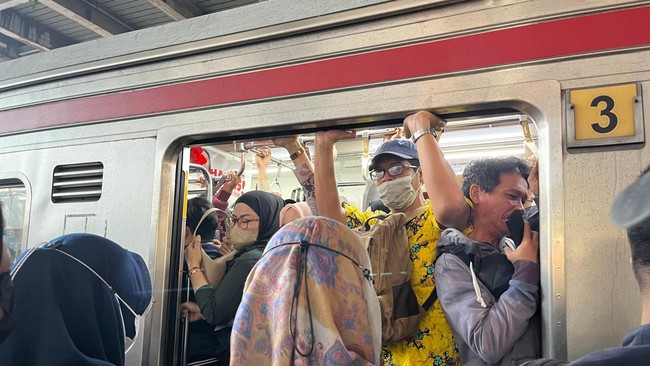 Petugas pun terlihat mendorong penumpang agar pintu kereta bisa tertutup. Salah satu penumpang, Helen (27), mengatakan suasana di dalam kereta saat ini semakin sesak karena kebanyakan kereta yang beroperasi hanya 8 rangkaian.