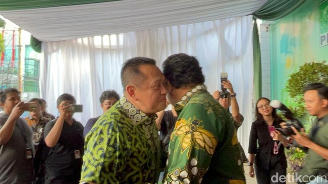 Pantauan detikcom di lokasi, Sabtu (8/6/2024), Ketua MPR RI Bambang Soesatyo (Bamsoet) tiba sekitar pukul 09.57 WIB. Bamsoet tampak mengenakan batik hijau.