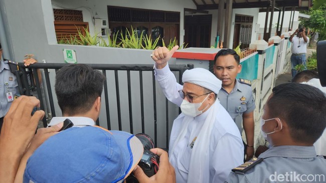 Pantauan detikcom di lokasi, Senin (10/6/2024), Habib Rizieq tiba sekitar pukul 10.27 WIB menaiki mobil. Dia turun langsung di depan Bapas. Dia melambaikan tangan dan memberikan jempol kepada awak media.
