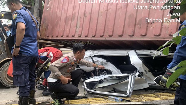 Pengemudi mobil sempat terjepit di dalam mobil. Kasat Lantas Polres Metro Jakarta Utara Kompol Edy Purwanto mengatakan peristiwa terjadi pada Kamis (13/6), pukul 11.00 WIB.