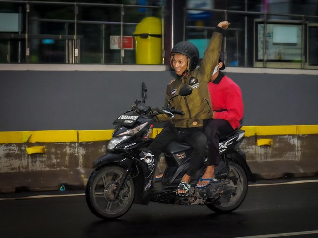 Viral di media sosial aksi jambret ponsel saat car free day (CFD) di kawasan Jalan Jenderal Sudirman, Jakarta Pusat, terpotret kamera fotografer Roni Asnan. Asnan mengatakan jambret itu sempat melakukan gestur meledek saat diteriaki 'maling'.