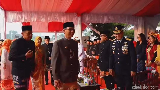 Upacara diikuti aparatur sipil negara (ASN) Pemprov DKI Jakarta yang memakai baju dinas hingga baju adat khas Betawi.