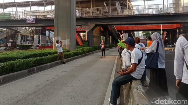 Selanjutnya jalanan dari arah utara ke selatan di sepanjang Rasuna Said-Mampang Prapatan masih bisa dilewati kendaraan, tepatnya lewat jalan sisi timur.