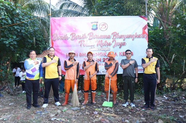 Kegiatan tersebut digelar di bantaran Kali Mampang Prapatan, Kuningan Barat, Mampang Prapatan, Jaksel, Minggu (23/6/2024). Bersih-bersih bersama Bhayangkara ini dilakukan menjelang peringatan Hari Bhayangkara ke-78.