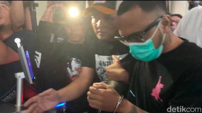 Pemasok narkoba jenis sabu ke Virgoun yang berinisial BGS ditangkap polisi. BGS tampak diborgol saat keluar dari mobil di Polres Jakarta Barat.