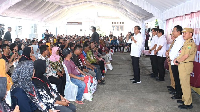 Dalam sambutannya, Jokowi menanyakan kepada penerima manfaat apakah mereka sudah menerima bantuan pangan dari Januari hingga Juni. Selain itu, Jokowi mengonfirmasi bahwa distribusi bantuan beras sebanyak 10 kilogram per bulan tersebut akan berlanjut hingga Desember.