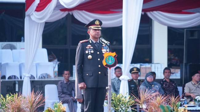Kapolres Metro Bekasi Kombes Twedi Aditya Bennyahdi menyampaikan pesan kepada personel di perayaan HUT Bhayangkara Ke-78. Twedi meminta jajarannya profesional menjalankan tugas sebagai pelindung, pelayan, dan pengayom masyarakat.