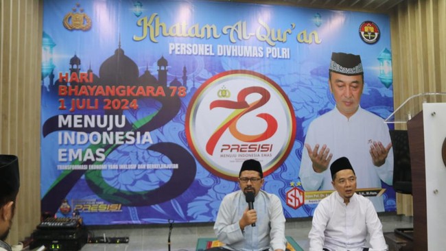 Divisi Humas Polri menyelenggarakan kegiatan rohani khataman Al-Qur'an dalam rangka HUT ke-78 Bhayangkara. Khataman ini dilakukan 78 kali dan dipimpin 78 ustaz.