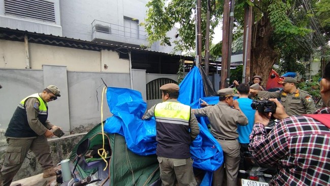 Pantauan detikcom di lokasi, Selasa (2/7/2024), terlihat petugas membongkar tenda pengungsian WNA itu mulai pukul 09.16 WIB. Selain Satpol PP, ada petugas dari Kantor Imigrasi Jakarta Selatan yang memberikan penjelasan kepada pengungsi WNA itu.