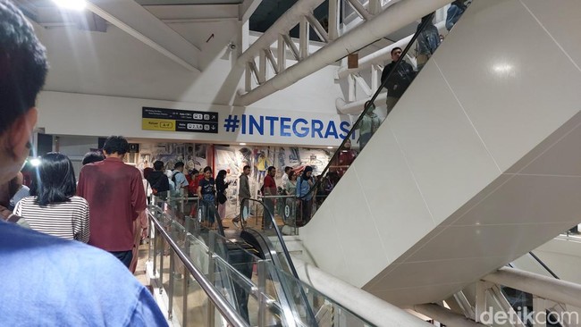 Pantauan detikcom di Halte CSW, Rabu (3/7/2024), pukul 20.15 WIB, antrean penumpang terjadi mulai di lantai 3 Halte CSW. Penumpang mengular hingga di depan eskalator.