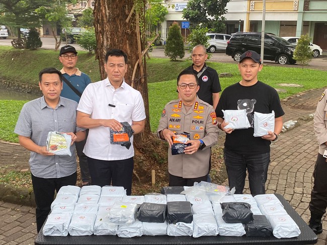 Setelah digeledah, didapati adanya narkotika jenis sabu yang dalam bentuk kemasan teh Cina yang dimuat di dalam tas. Total ada 45 bungkus yang diperkirakan memiliki berat 45 kilogram.