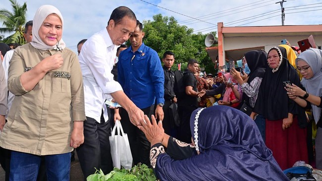 Dilansir Biro Pers, Media, dan Informasi Sekretariat Presiden, Jumat (5/7/2024), Jokowi dan Iriana menyusuri setiap lorong pasar. Mereka berhenti di beberapa lapak pedagang untuk berinteraksi langsung dan membeli cabai, jeruk, dan sayuran.