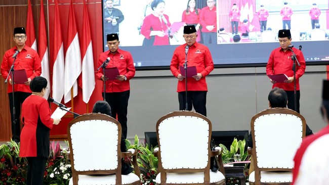PDIP baru saja mengambil sumpah terhadap pengurus DPP yang masa baktinya diperpanjang hingga 2025. Selain pengambilan sumpah ketua DPP, kesekjenan, dan kebendaharaan, ada empat kepala badan partai yang juga ikut diambil sumpah jabatannya.