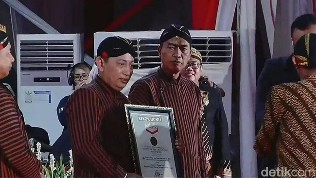 "Pertama, penyerahan kepada Bapak Kepala Kepolisian Republik Indonesia untuk kategori pagelaran wayang kulit dengan peragaan wayang nusantara jenis terbanyak," kata pembawa acara.