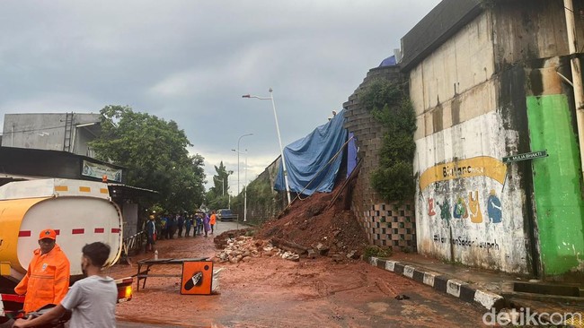 "Longsor, tanah merah gitu, biasa, nggak kuat ininya, tapi nggak ada korban kok. Aman. Cuma itu biasalah, turap gitu, tanah merah, kena tanah-air dari tol kan, itu longsor dikit," kata Kompol Tedjo Asmoro kepada wartawan, Sabtu (6/7).