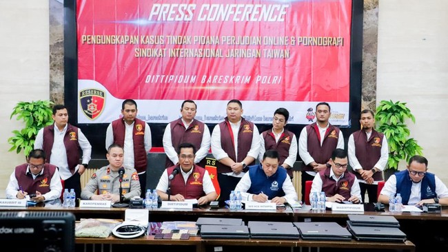 Bareskrim Polri mengungkap kasus judi online (judol) jaringan internasional pada dua situs judi online, yakni Hot51 dan 82gaming. Pada situs Hot51, selain layanan judi online, disediakan layanan live streaming pornografi.