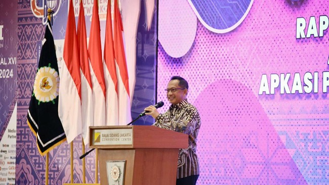 Menteri Dalam Negeri (Mendagri) Muhammad Tito Karnavian menjadi pembicara kunci pada Rapat Kerja Nasional (Rakernas) XVI Asosiasi Pemerintah Kabupaten Seluruh Indonesia (Apkasi).