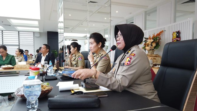 "Mereka datang untuk melaksanakan studi banding, terutama dalam masalah rekrutmen, woman leadership, dan juga bagaimana Polri menyikapi tantangan tugas ke depan, khususnya tentang isu gender-based violence (GBV). Hal ini dilakukan dalam bentuk sharing best practices serta tantangan yang dihadapi dan bagaimana kita menyikapi tantangan tersebut," jelas Desi.